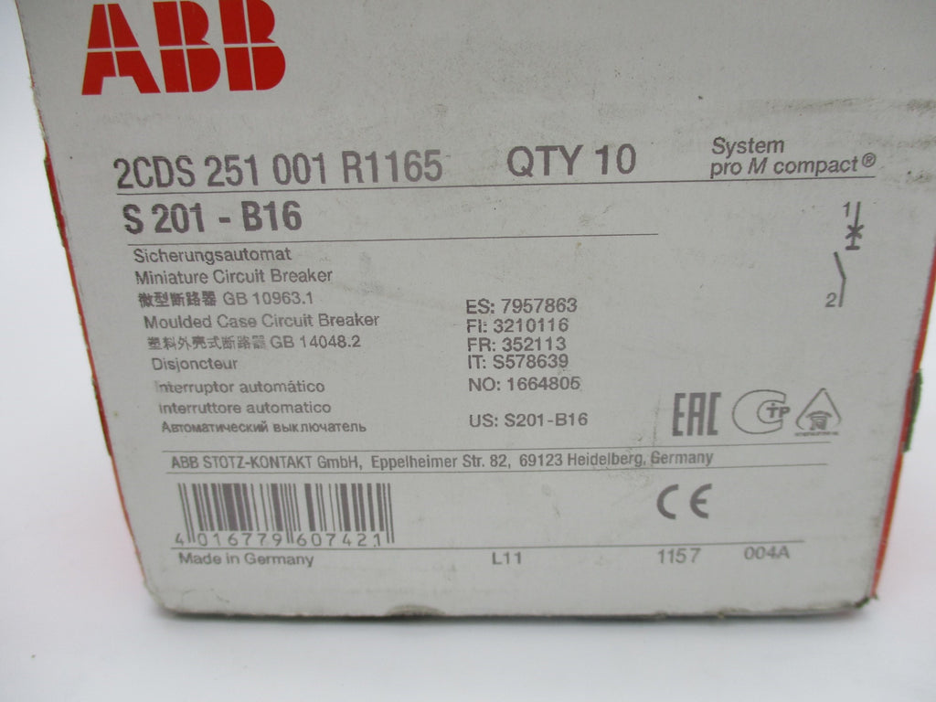 ABB S201-B16 230/400V 6A (PKG OF 10) NSMP