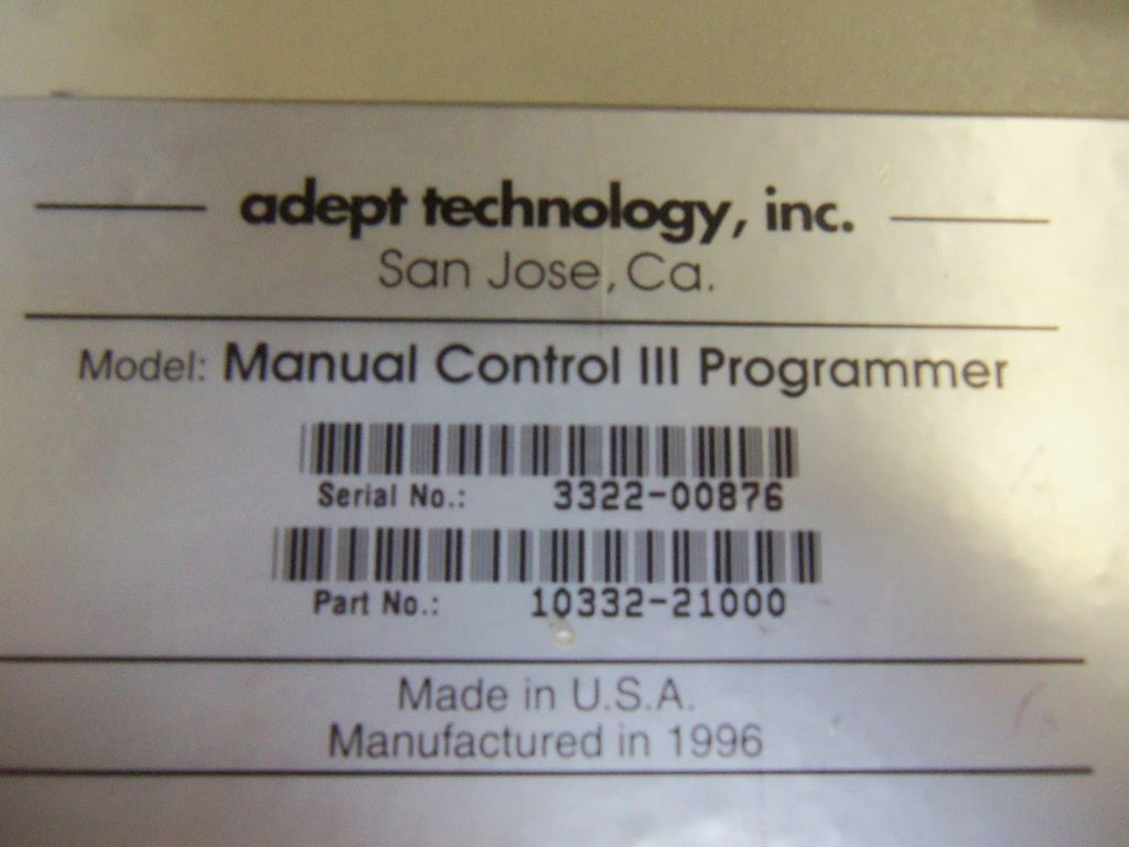 ADEPT TECHNOLOGY 10332-21000 PROGRAMMER FOR MANUAL CONTROL UNMP