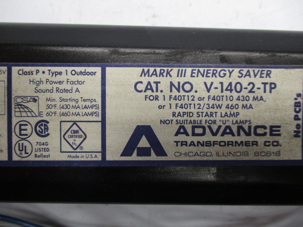 ADVANCE TRANSFORMER V-140-2-TP 277V 0.185A UNMP