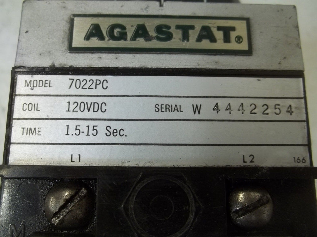 AGASTAT 7022PC TIMING DELAY 120VDC 1.5-15 SEC. (AS PICTURED)UNMP