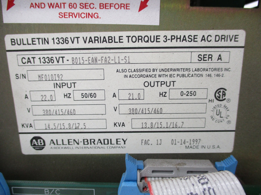 ALLEN BRADLEY 1336VT-B015-EAN-FA2-L1-S1 SER. A UNMP