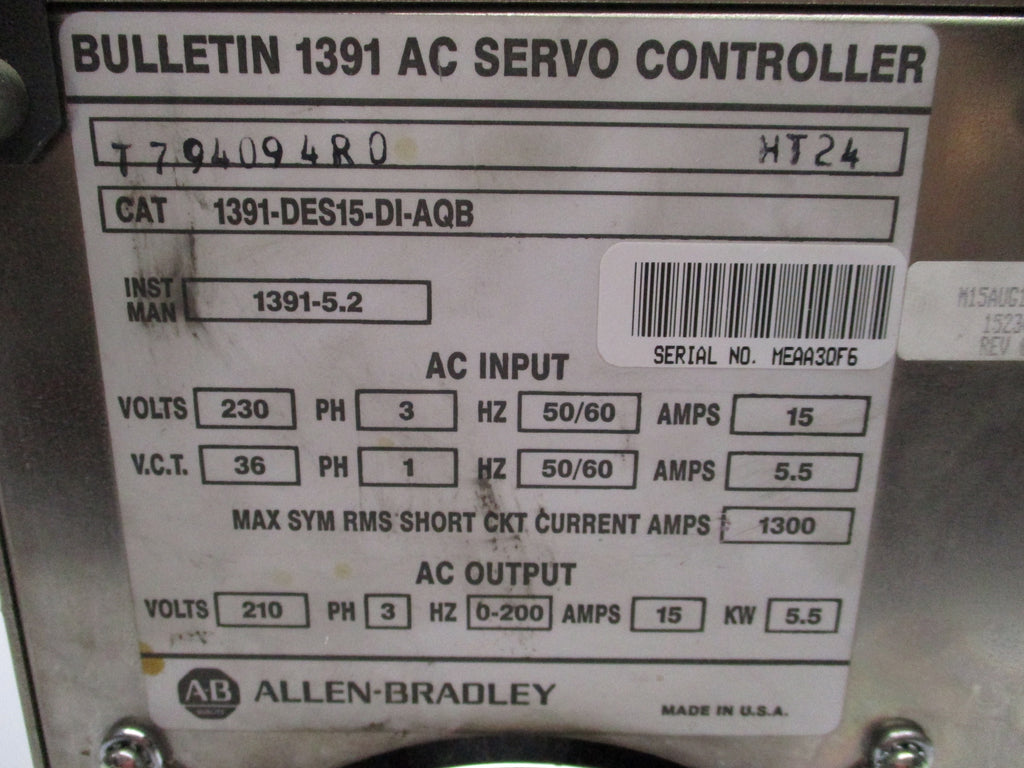 ALLEN BRADLEY 1391-DES15-DI-AQB 230V 15A NUPI