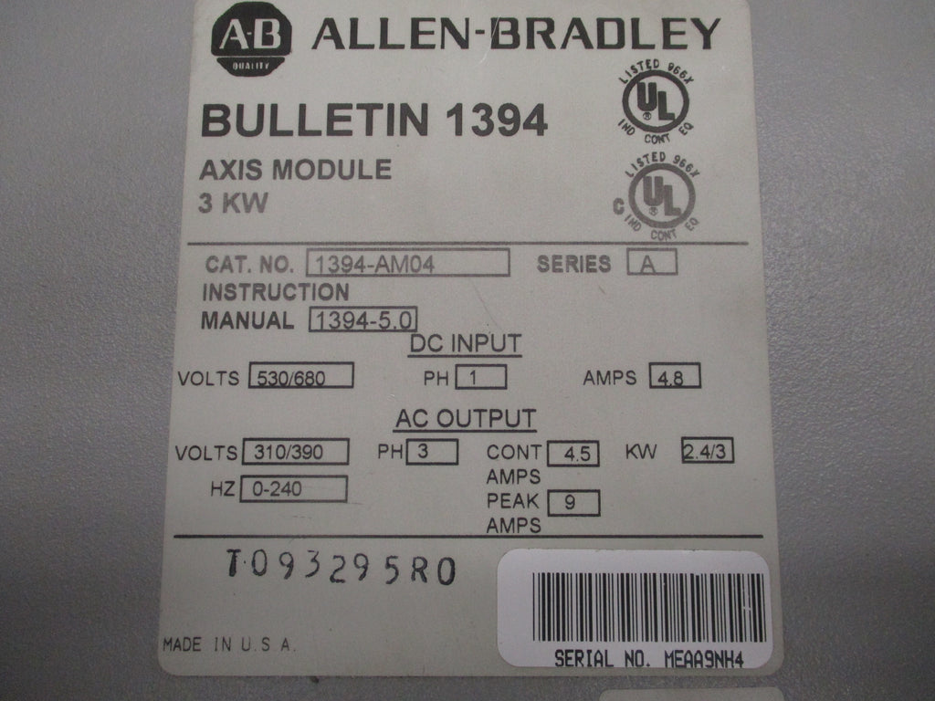 ALLEN BRADLEY 1394-AM04 SER. A 530/680V 4.8A UNMP