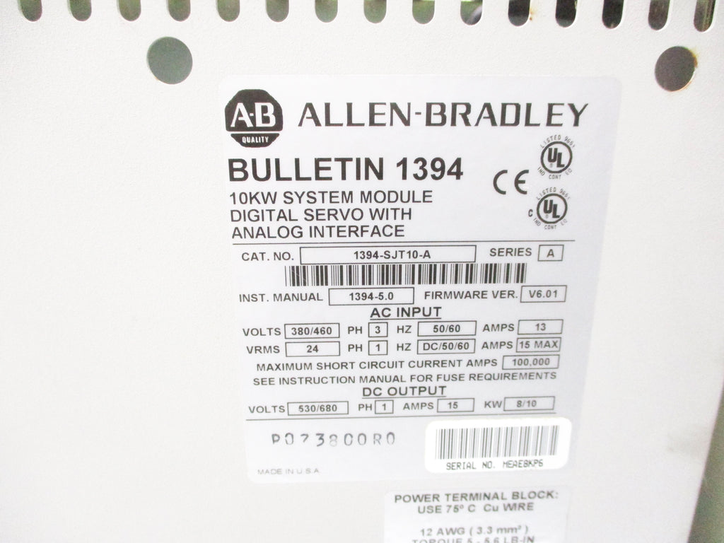 ALLEN BRADLEY 1394-SJT10-A SER. A F/W V6.01 UNMP