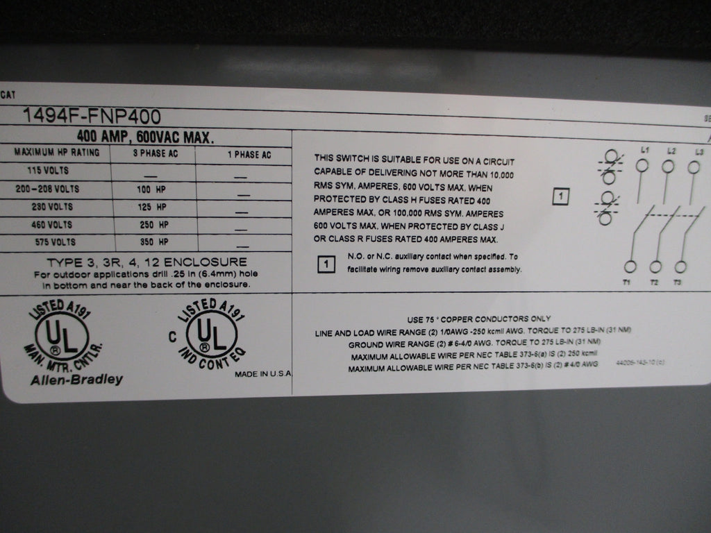 ALLEN BRADLEY 1494F-FNP400 SER.A NSMP