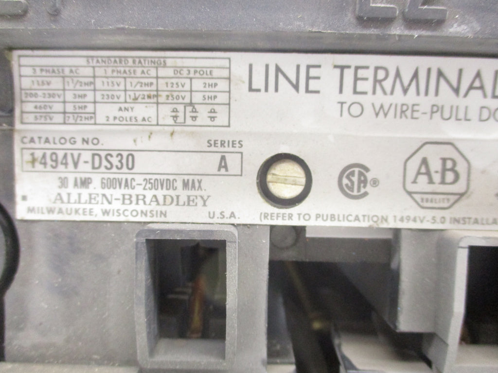 ALLEN BRADLEY 1494V-DS30 SER. A 600VAC 30A (AS PICTURED) UNMP