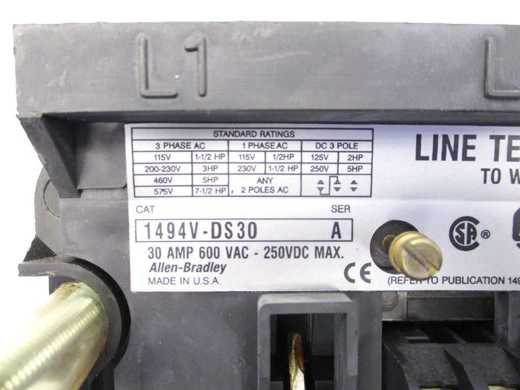 ALLEN BRADLEY 1494V-DS30 SER. A 600VAC 30A (AS PICTURED2) NSNP
