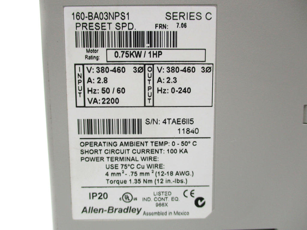 ALLEN BRADLEY 160-BA03NPS1 SER. C F/W 7.06 NSNP