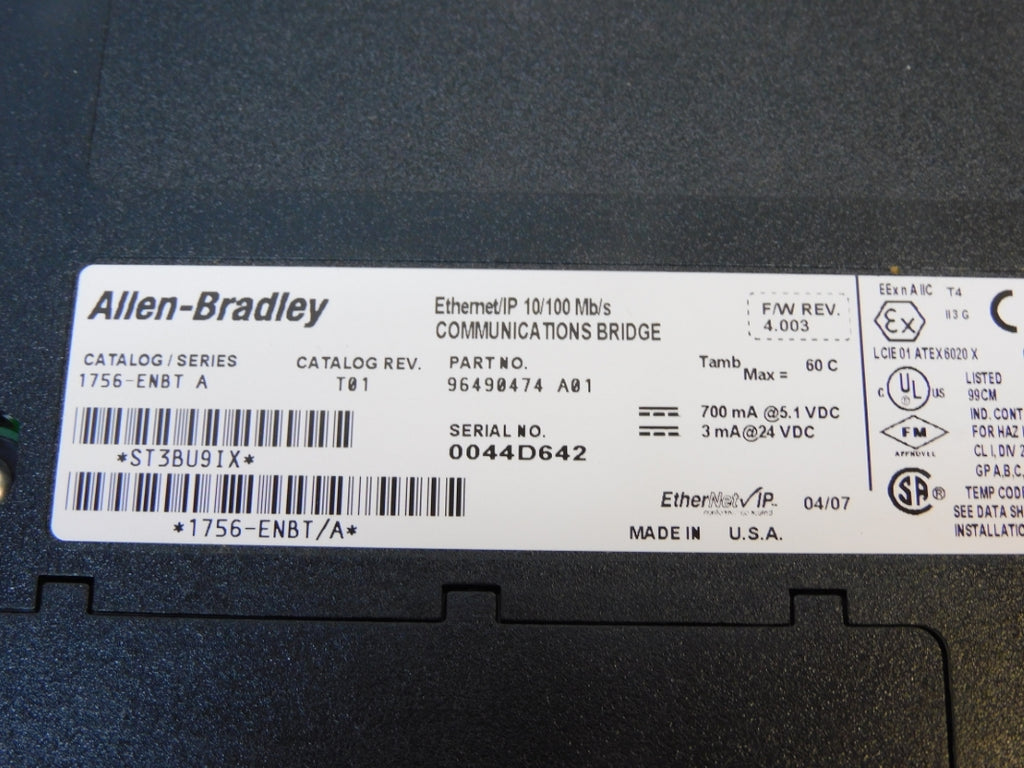 ALLEN BRADLEY 1756-ENBT SER. A F/W 4.003 24VDC NSMP