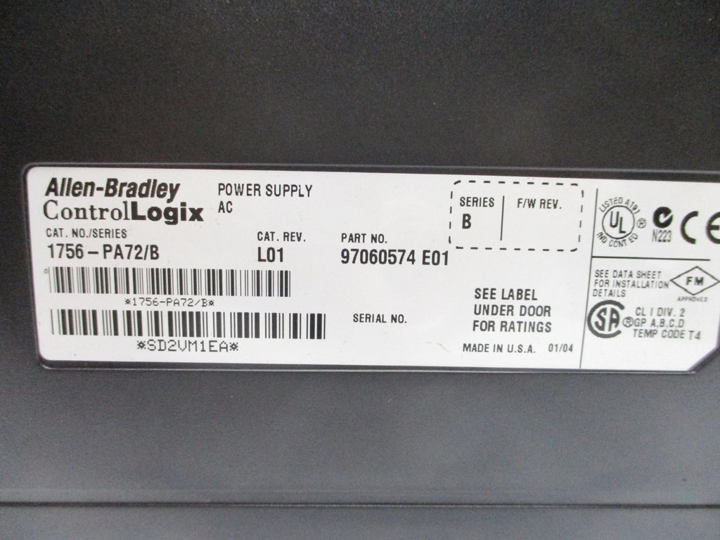 ALLEN BRADLEY 1756-PA72 SER. B 24VDC 2.8A UNMP
