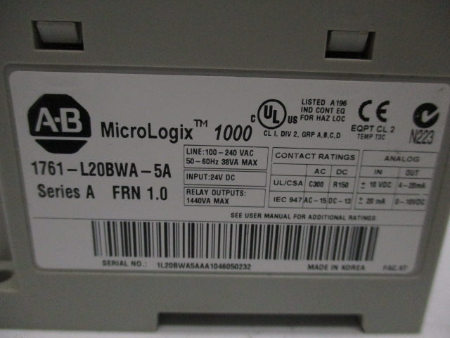 ALLEN BRADLEY 1761-L20BWA-5A SER. A F/W 1.0 UNMP