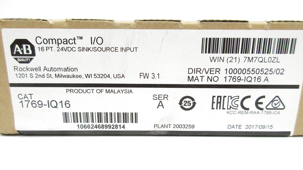 ALLEN BRADLEY 1769-IQ16 SER. A F/W 3.1 24VDC DATE: 2017 NSFS
