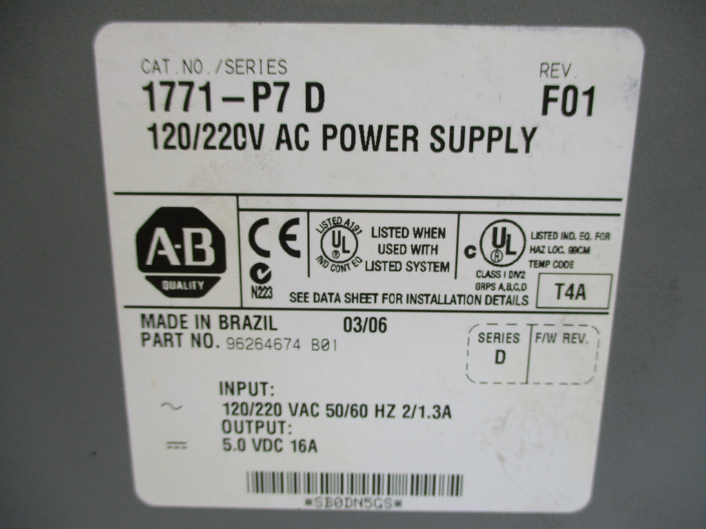 ALLEN BRADLEY 1771-P7 SER. D UNMP