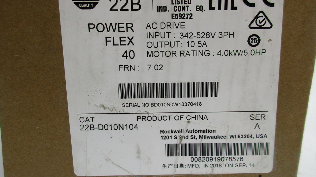 ALLEN BRADLEY 22B-D010N104 SER. A F/W 7.02 342-528VAC 13.0A NSMP