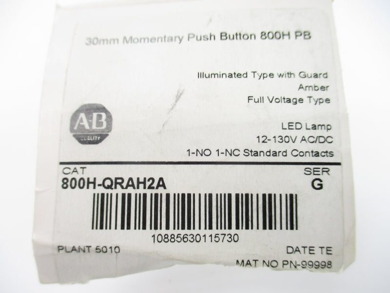 ALLEN BRADLEY 800H-QRAH2A SER. G 12-30VAC/DC (WH) NSMP