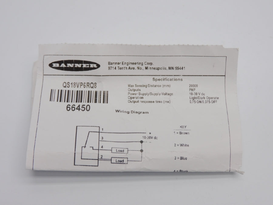 BANNER ENGINEERING QS18VP6RQ8 64450 10-30VDC NSNP