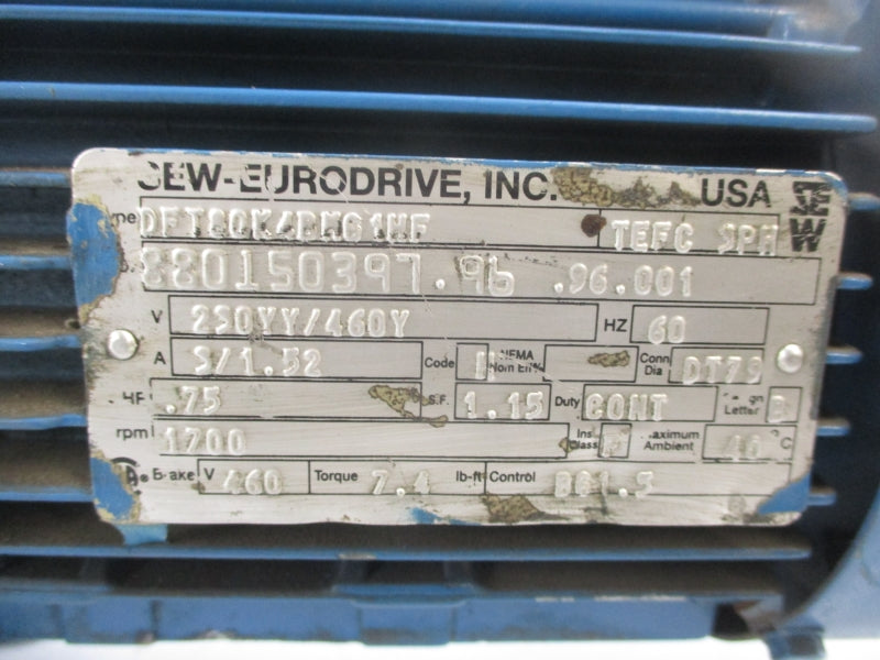 SEW-EURODRIVE R63DT60K4BM61MF DFT80K4BM61HF 230/460V 3/1.52A NSNP