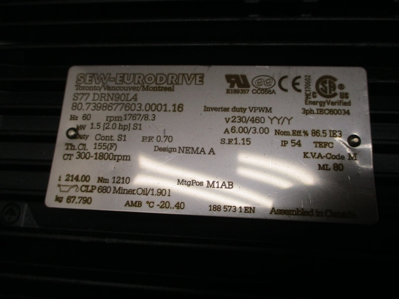 SEW-EURODRIVE S77DRN90L4 S77/A 230/460V 6.00/3.00A NSNP