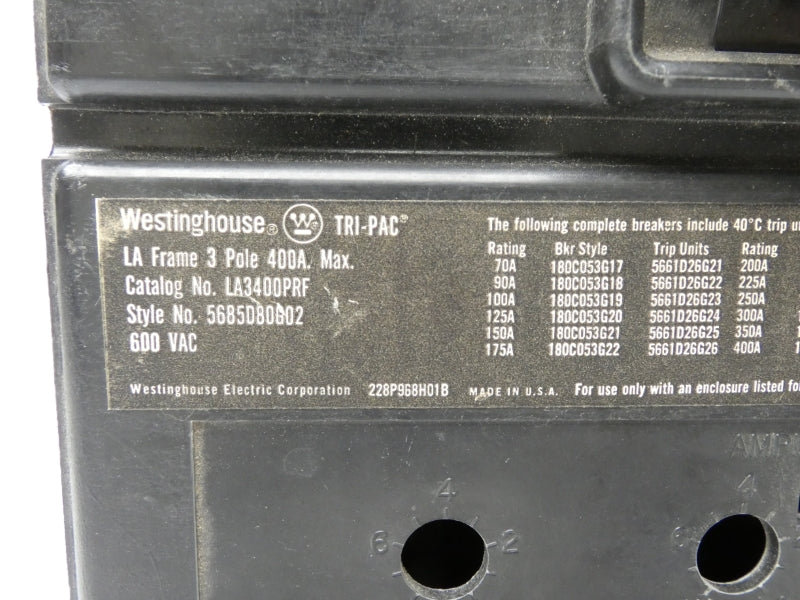 WESTINGHOUSE LA3400PRF 600VAC 400A NSNP