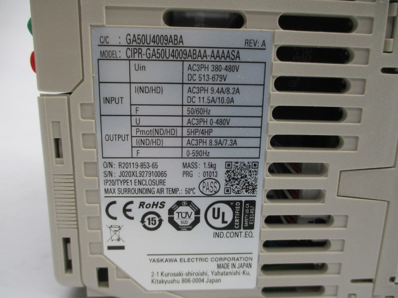 YASKAWA CIPR-GA50U4009ABAA-AAAASA 380-480VAC 9.4/8.2A REV. A NSMP