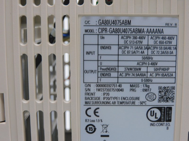 YASKAWA CIPR-GA80U4075ABMA-AAAANA REV. B 460-480V 87.5/71.4A NSNP