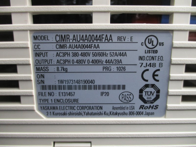 YASKAWA ELECTRIC CIMR-AU4A0044FAA REV. E 380-480VAC 52/44A NSNP