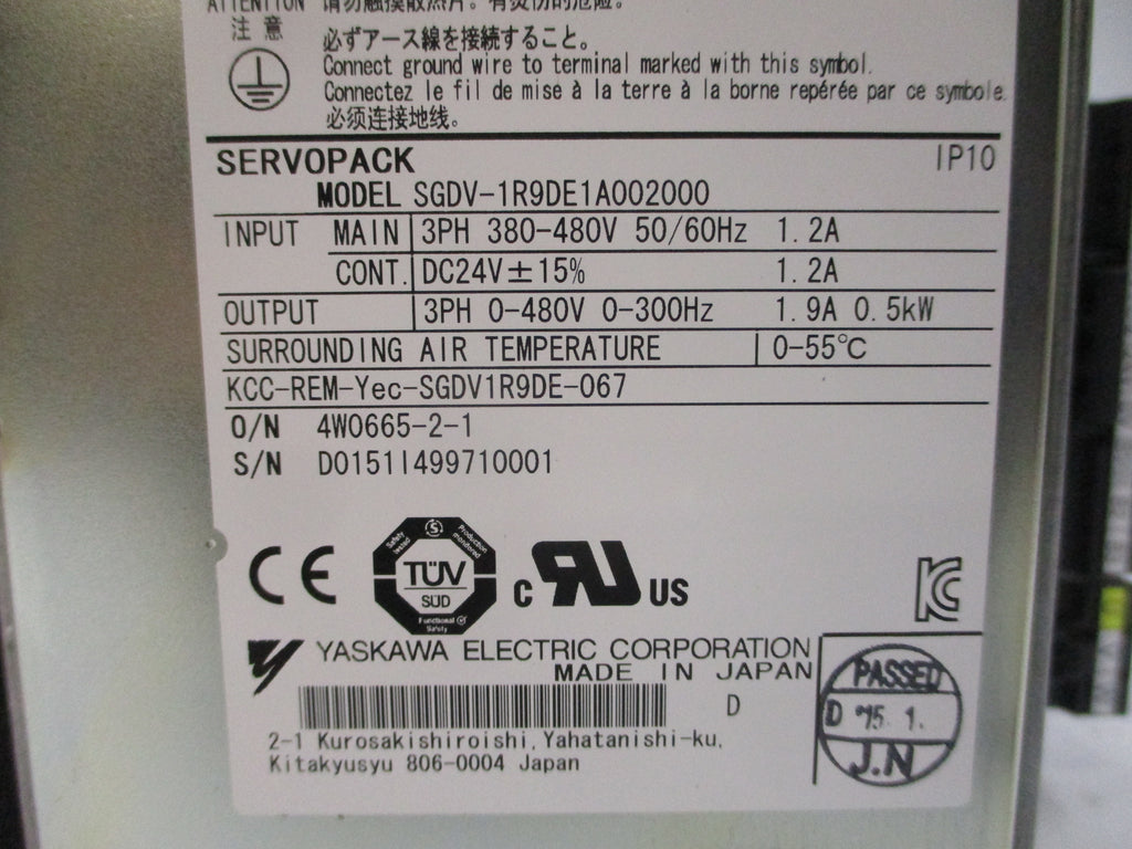 YASKAWA SGDV-1R9DE1A002000100 380-480VDC 1.2A NSMP